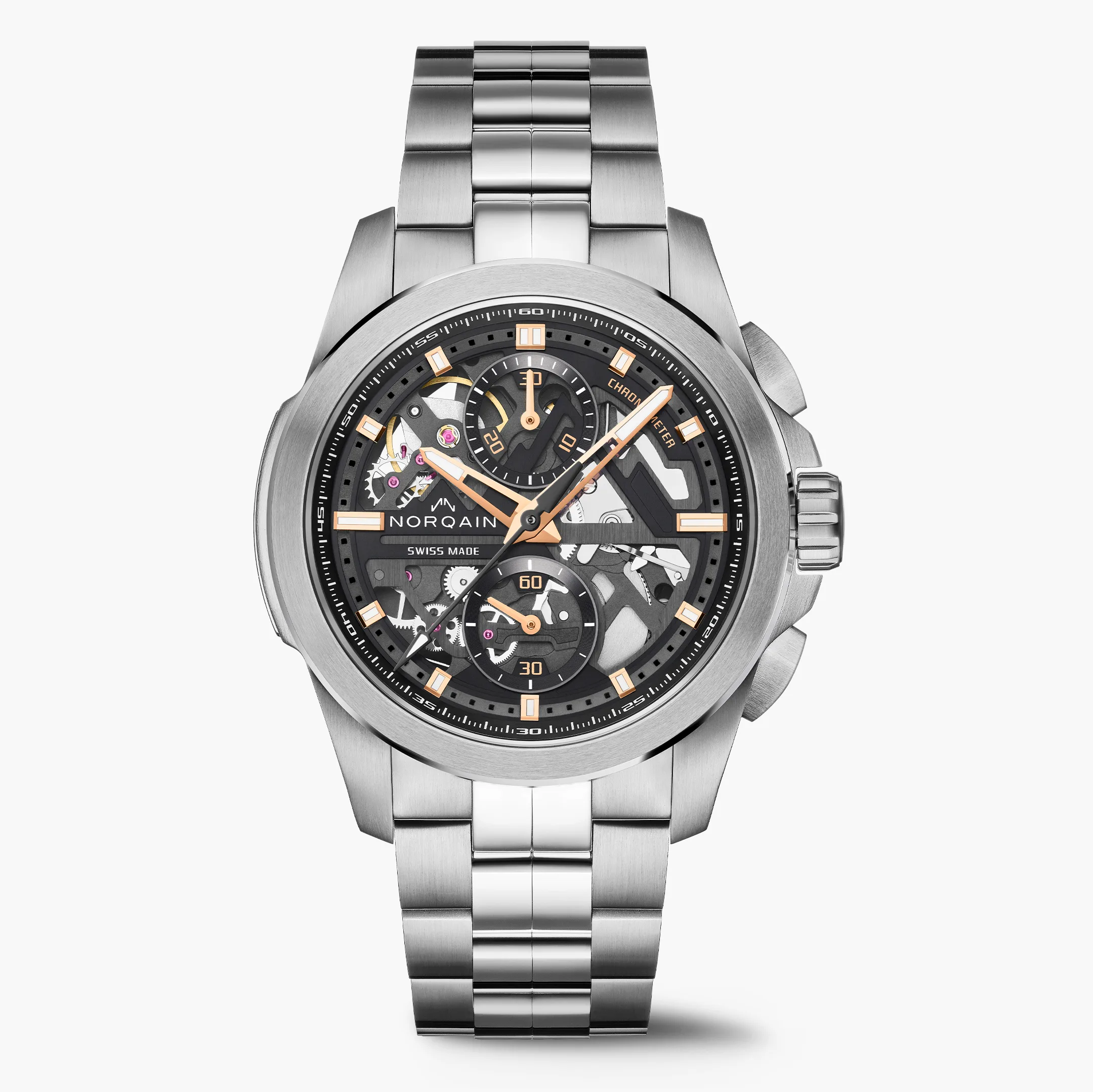 Il successo dell’Independence Skeleton Chrono non è frutto del caso. La collaborazione con la Manifattura AMT, sotto la guida del CEO Ben Küffer e con il contributo di Jean-Claude Biver, figura leggendaria dell’orologeria svizzera, ha permesso a Norqain di realizzare un movimento proprietario di altissimo livello.