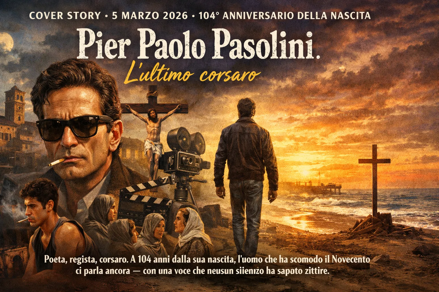 A 104 anni dalla nascita, scegliere Pasolini come figura di copertina non è nostalgia. È necessità. Perché le domande che ha posto — sul potere, sull’identità, sul corpo, sulla lingua, sulla perdita dell’autenticità nel capitalismo consumista — non hanno ancora trovato risposta. Anzi: si sono fatte più urgenti.