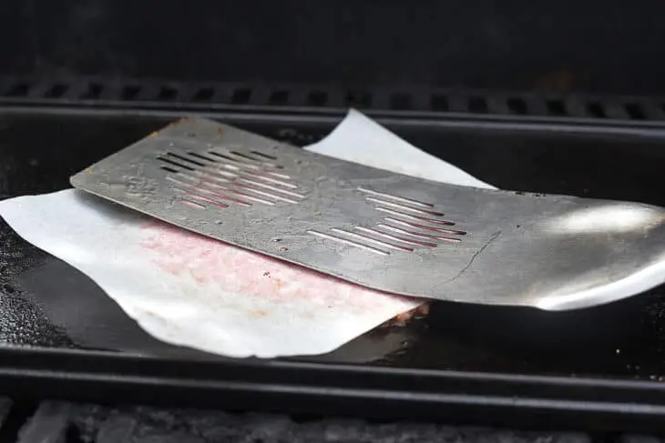 - Pressare la Carne: Posizionare una pallina di carne sulla piastra e premere immediatamente con la spatola per ottenere uno spessore di circa un centimetro.