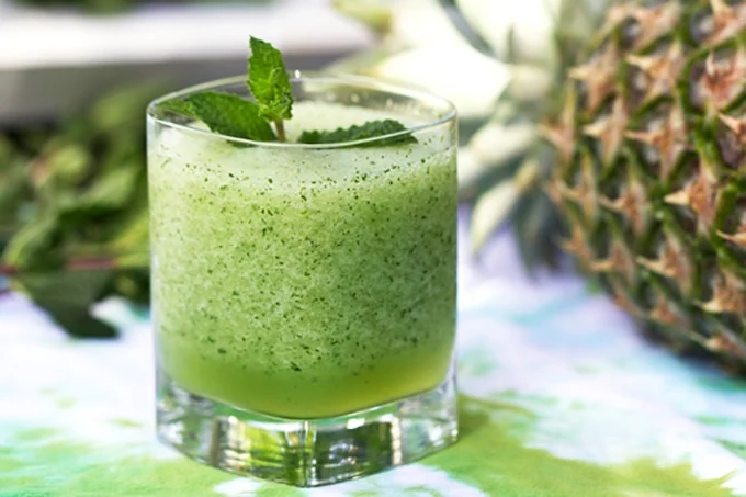 Prima frulla delicatamente la menta con un po’ di sciroppo, poi aggiungi il resto degli ingredienti.