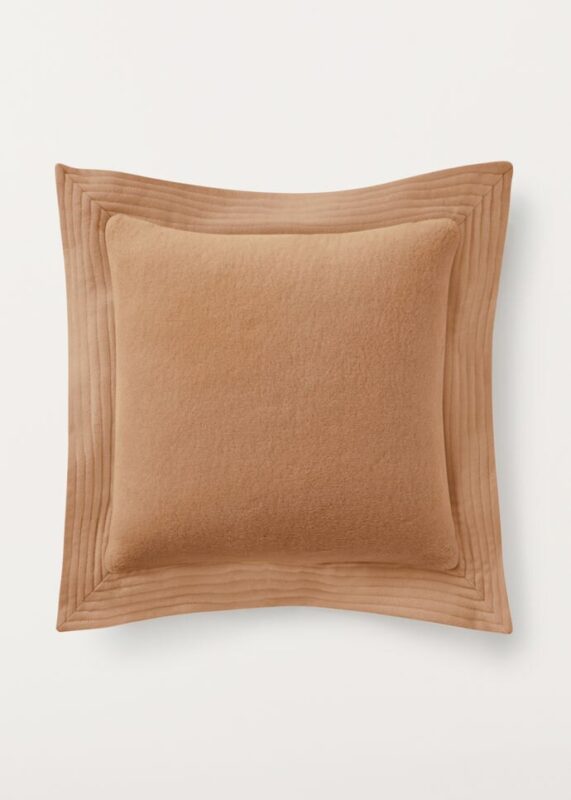 Disegnato da Studio Hermès è il cuscino che si abbina realizzato in 100% cachemire e finitura a punto cavallo.