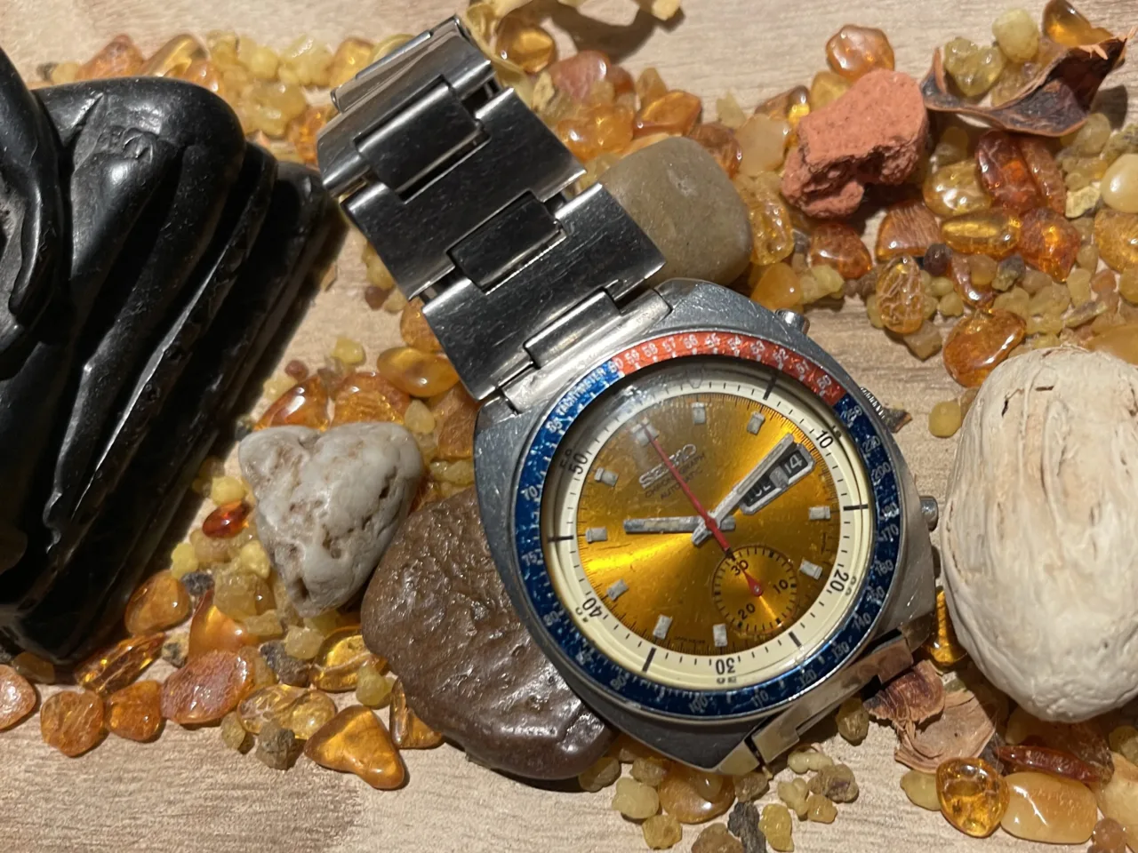 - Possiede già altri orologi vintage, sia svizzeri sia giapponesi (Omega Speedmaster, Seiko Turtle, Citizen Bullhead).