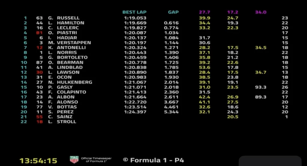 Russell, Hamilton e Leclerc i primi 3 nelle FP3 in attese delle qualifiche che partiranno alle ore 6 italiane. Brutto incidente per il nostro Kimi Antonelli (7°) sul finire delle prove (interrotte con bandiera rossa), macchina messa male per le qualifiche.